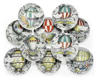 Temi & variazioniFornasetti ebbe l'idea geniale di scegliere un tema e riproporlo in una vasta serie di variazioni, ciascuna differente dall'altra. A differenza di Warhol, che realizzava le sue variazioni di un tema con una rapidissima tecnica che potremmo definire industriale, le opere di Fornasetti sono rigorosamente lavorate a mano e non ne esistono due uguali. Per il designer milanese ogni idea era un'ispirazione sufficiente per creare una miriade di variazioni e forse proprio per questo motivo gran parte del suo lavoro si fonda sull'evoluzione di temi specifici, tra l'altro facilmente identificabili e memorizzabili dagli acquirenti. Tra i soggetti più utilizzati nella realizzazione di variazioni troviamo gli astri, le carte da gioco, gli arlecchini e le mani.