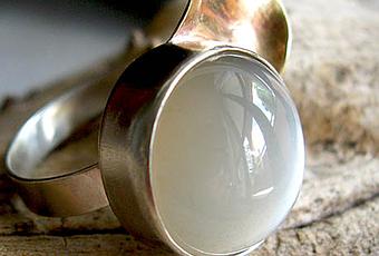 Un anello importante, capitato davvero per caso. Un'amica che mi mostra delle pietre, e tra queste dei piccoli cabochon di pietra di luna. Ne scelgo tre e li porto a casa: due sono decisamente ovali, il terzo è più piccolo, tondo ma non perfettamente... imperfettamente bello.