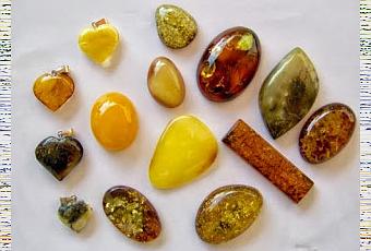 Caratteristiche: resina fossile prodotta da una conifera vissuta nel Terziario ed estintasi 40 milioni di anni fa; il colore varia dal rosso cupo all' arancione, al bruno scuro, al latte, anche se sono note rare colorazioni verdastre e nerastre dovute alla presenza di particolari sostanze organiche. Si rinviene in noduli o masserelle di forma irregolare, tondeggianti e screpolate in superficie. Può inglobare al suo interno resti di animali e vegetali visibili ad occhio nudo e oggetto di studio da parte dei paleontologi. Brucia emanando un forte profumo d' incenso e galleggia. Se strofinata, l'ambra produce elettricità che attrae polvere e corpuscoli leggeri; è infiammabile. Viene imitata con resine artificiali e con l'ambroide.