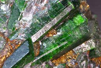 Caratteristiche: silicato di calcio e magnesio; sistema monoclino; cristalli prismatici allungati, più spesso in aggregati colonnari e granulari; colori: verde, giallo, azzurro, bruno e biancastro, blu e viola.