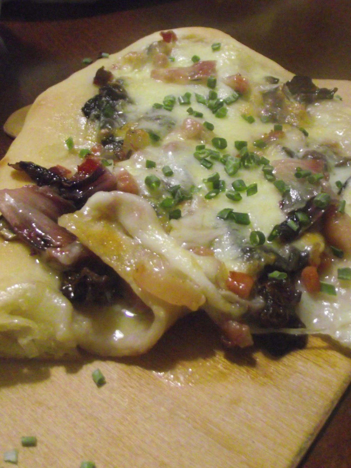 Pizza con radicchio e speck e la mitica focaccia con i pomodorini.Quest'ultima io la faccio alta alta,perchè affondarci i denti in quella goduria è una cosa magnifica!Quindi uso uno stampo un pò piccolo.