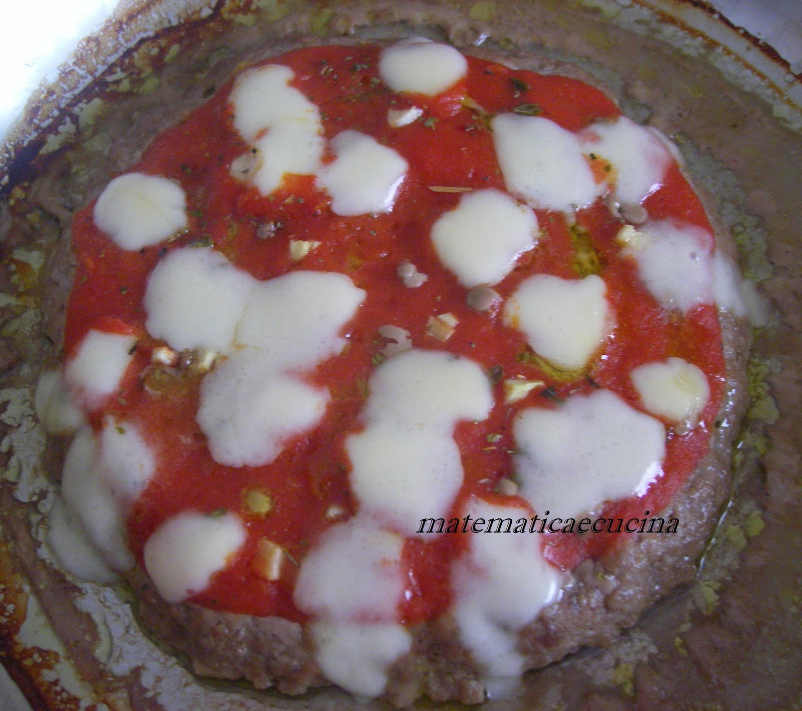 Infornate a 180° per circa 20 minuti. Il tempo dipende anche dallo spessore della carne. Togliete dal forno e coprite la carne con una dadolata di scamorza.