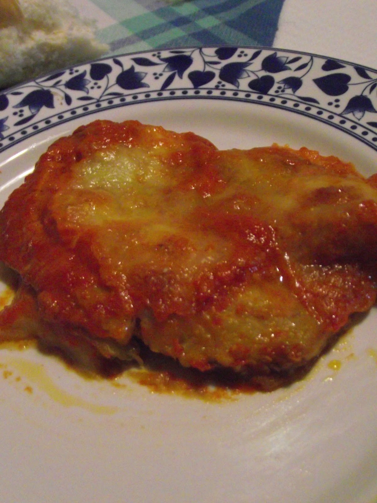 Va beh,ho inventato l'acqua calda.Perchè in realtà è solamente una parmigiana fatta in un solo strato.Oppure se volessi essere très chic e très charmant,potrei dirvi che è semplicemente.....destrutturata.Facciamo invece che vi dico che è molto buona,che può essere un piatto unico e che fredda (visto il caro Minosse) è superlativa!!Non ci sono dosi da dare.Si prendono le melanzane,si tagliano a fettine,si cospargono di sale e si lasciano per un'oretta circa a perdere l'amarognolo.Si sciacquano,si asciugano con la carta forno e qui si apre un bivio:o le friggete o le grigliate.(Io,ehm,le ho fritte).