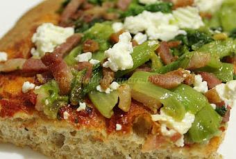 Insaporire la polpa di pomodoro con del brodo granulare vegetale, io ho il mio o con del sale, con origano, un filo d'olio, distribuire sulle pizze, infornare a 220° per 12 minuti, tirare fuori e condire con la scarola saltata in padella, con quartirolo e la pancetta sgrassata. Rimettere nel forno per altri 5 minuti, sfornare e servire ! E' venuta morbidissima e tanto buona !