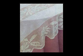 Per realizzare questa tovaglia occorrono: 1 quadrato di lino di cm 155 di lato, cotone bianco n. 8, uncinetto n. 1,25.