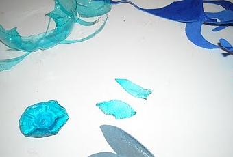 riflettendo sulle strane coppie mi sono detta..chissà la plastica con la pelle...quindi presa una bottiglia di plastica di un bell'azzurro mare, tagliato il fondo (la parte più dura...)