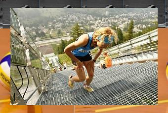 È stata un’avventura, una scoperta per tutte; un modo originale per unire divertimento e allenamento. Dopo le prime decine di metri relativamente in piano (corrispondenti allo spazio che gli atleti utilizzano per rallentare dopo il salto) è cominciata la salita vera e propria, prima sulla rete di corde, poi lungo i 1.000 gradini che portano alla vetta del trampolino. “La pendenza cresce man mano che si procede” spiega Debora Cardone, “e ci si ritrova a correre o camminare praticamente a quattro zampe. Poi sulla scalinata si torna ad avanzare “in piedi”. Qui, nel primo tratto, è difficile sorpassare; dopo la strada si allarga nuovamente”.