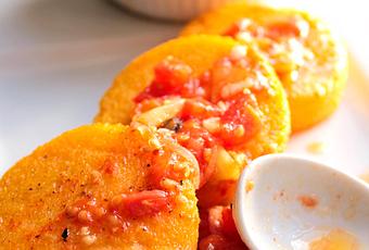 Le polentine devono essere super croccanti e la salsa di pomodoro ben fredda.