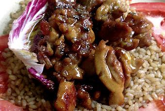 • Quando lo spezzatino è cotto e abbastanza asciutto, aggingere il resto del miele e far caramallera a fuoco molto vivo! (circa 5')