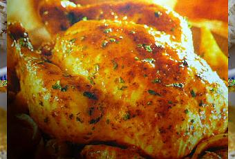 il pollo allo zafferano è servito con tante spezie il limone che lo rende molto fresco e saporito