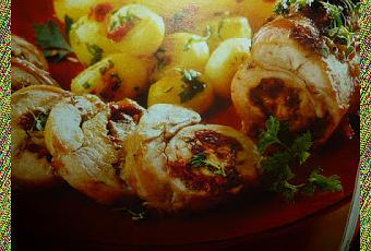 in questa ricette del pollo ripieno il pollo viene coperto di ripieno e poi arrotolato i pomodorini secchi la pancetta le spezie lo rendono molto saporito ottimo servito con patate