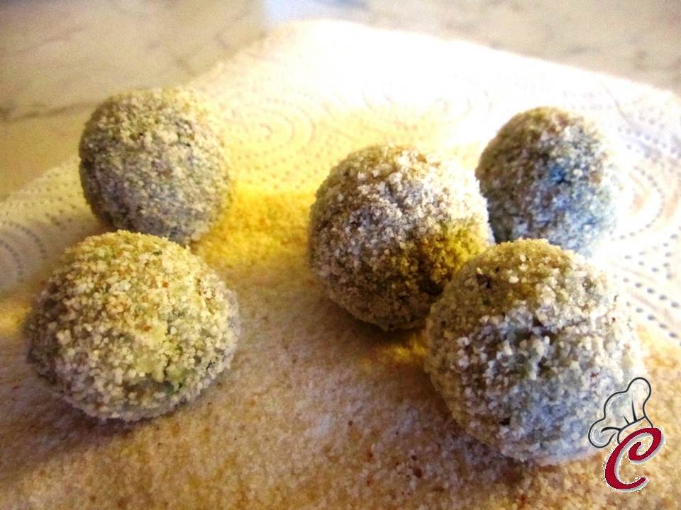 A questo punto create delle polpettine non troppo grandi. Passatele nel pangrattato di riso e lasciatele a riposo, in frigorifero, per un'oretta (potrete anche prepararle il giorno prima, o la mattina per la sera). In questo modo la panatura si compatterà bene.Preparate la salsa. Lavate e asciugate accuratamente le foglie di basilico. Tritatele, insieme ai semi di zucca, quindi mescolate tutto alla senape. Aggiungete pepe e zenzero a piacere e mescolate bene.