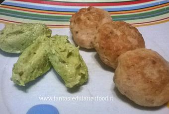 Titolo : POLPETTE DI TACCHINO E PROSCIUTTO COTTE A VAPORE CON QUENELLE DI PISELLI