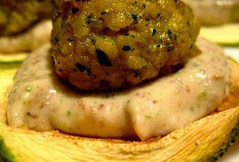 Compattatele bene e sistematele su una superficie piana. Fatele riposare in frigo per almeno mezz'ora, il tempo della preparazione della farcia: non avendo l'uovo che le lega è importante che si rassodino bene prima della cottura. Riprendete il terzo di zucchina lasciata da parte.