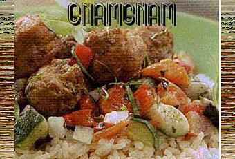 - Unite il bicarbonato e mescolate bene. Formate velocemente con le mani inumidite delle polpette. Scaldate l’olio e friggete le polpette; sgocciolatele su un piatto rivestito di carta assorbente da cucina. Mettete in 4 piatti individuali un letto di riso bianco, disponete sopra le verdure stufate e aggiungete le polpettine. Servite.