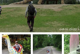 Appena arrivati abbiamo sfruttato lo sconto per entrare e via verso il parco alla ricerca di qualche mostruoso dinosauro... Il parco è molto bello e verde, a ridosso dell'Adda, ci sono moltissimi tavoli per pic nic e anche una zona per fare le grigliate. Dopo pranzo abbiamo preso il sentiero che ci ha condotto dalla nascita delle prime forme viventi fino all'uomo, passando per tirannosauri, caprette (che inseguivano Davide) daini, cervi e pavoni colorati.