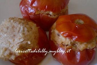 versione alla marinara dei pomodori ripieni cotti senza forno, per il ripieno ho usato dello sgombro conservato al naturale (io uso quello in vetro o nelle scatolette tipo tonno), ma va benissimo anche il tonno al naturale se lo preferite, ormai il mio metodo di cuocere gli ortaggi senza l'uso del forno in estate per non stare troppo tra il caldo è collaudatissimo, usando una pentola antiaderente a doppio fondo non solo si evita il caldo del forno ma si risparmia anche tempo e gas perchè la cottura diminuisce di un bel pò perchè le pentole a fondo spesso accumulano molto calore e a metà cottura si spegne il gas e la pietanza continua a cuocere alla perfezione, inoltre i pomodori ripieni di sgombro senza forno sono anche poco calorici perchè non c'è bisogno di usare olio per cuocere