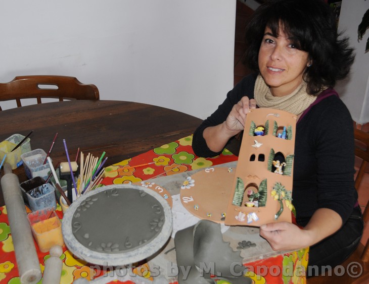Claudia Irace, mi mostra una delle sue creazioni.