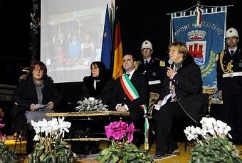 Rosaria Ferrara nel suo breve intervento in diretta con gli amici di Thurnau ha detto che detto che quest'anno il nostro Natale ha inizio con la gioia di condividere , con i nostri amici di Thurnau l'accensione del nostro albero." inoltre " Spero che questo Natale riesca ad allontanare i momenti difficili e tristi" e salutando ...ein frohes fest.