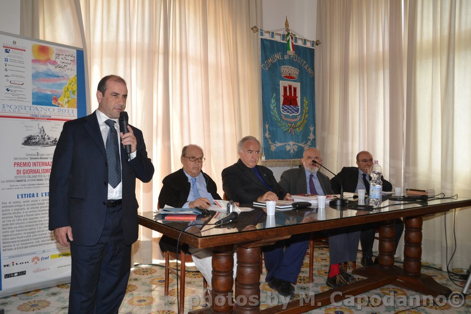 Il Sindaco De Lucia, nel dare il benvenuto a tutti coloro che hanno partecipato ai lavori, ha aggiunto: “Semmai esistesse un concetto di bellezza oggettiva, Positano ne incarna sicuramente tutte le caratteristiche. Le meraviglie naturali e la magica atmosfera che la caratterizzano sono ancora nei capolavori dei più grandi artisti del secolo scorso. E’ da sempre terra di ispirazione e di elevazione per eccellenza e dunque luogo privilegiato per discutere di etica, intesa anche come rinnovamento civile, in un momento non facile per la società contemporanea. Questo seminario è dedicato a Carlo e Salvatore Attanasio, che oggi ricordiamo per l’amore sempre dimostrato per Positano, anche con il costante impegno nel portarvi tutto il meglio della cultura internazionale, nell’ottica di un costante accrescimento etico e culturale del nostro paese.” “Inoltre” - continua il Sindaco De Lucia - “voglio altresì ringraziare i dottori Sergio Rizzo e Roberto Napoletano che oggi Positano premia come figure più rappresentative del giornalismo italiano. Il loro impegno civile, culturale e professionale vuole essere da monito per tutti gli interpreti dei mezzi di comunicazione di massa contemporanei. Essere autore seguendo un codice deontologico è oggi divenuto non facile. Ma alle nuove generazioni che si affacciano al mondo dell’informazione attuale Positano vuol dire, con questo riconoscimento, che ci sono ancora professionisti come Rizzo e Napoletano che fanno del proprio mestiere icona di verità, democrazia e pluralismo.”