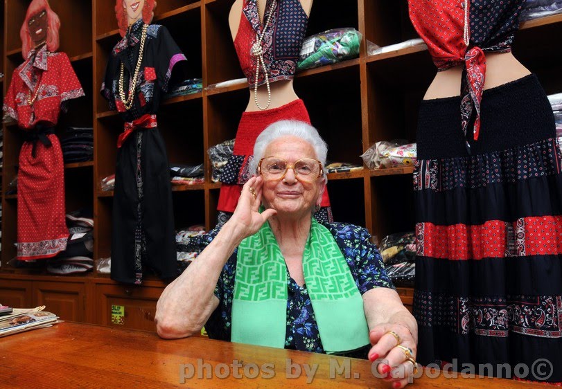" Nel Mondo, la boutique di Maria " Lampo" di Positano è senzaltro la piu conosciuta. La sartoria di Maria è' stata la prima ad aprire alla fine dell' ultima guerra, durante questo periodo Positano era un villaggio di marinai e pescatori ospitali e generosi, sconosciuto ai più ed era dimora e rifugio di artisti squattrinati provenienti da tutta Europa. Dal '46 incominciarono ad arrivare i primi " Furrastieri" e i positanesi intuendo una nuova possibile fonte di guadagno si adoperarono in tutti i modi per accoglierli a dovere. Qualcuno li accolse in casa offrendo linde stanze, altri offrendo freschi sorbetti, vino locale e pasti con le specialità del luogo. Nacquero i primi negozi. Maria allora poco più che diciottenne con il marito Alfonsino, bravissimo nel tagliare e nel cucire, intuì la possibilità di una svolta nella loro vita mettendosi all'opera con la brillante idea di confezionare in poco tempo un pantalone su misura per il turista. Esposero sull' uscio della bottega un cartello con la scritta " Si eseguono pantaloni su misura". A chi domandava a quando il ritiro la risposta era : " Dopo il bagno, tra un paio d'ore". Di lì a due ore il pantolone di lino grezzo o di tela Massaua era pronto. Un " Furrastiero" stupito disse," Ma tu sei davvero un lampo". Da qui il soprannome di Maria Lampo, tanto che oggi dopo più di 50 anni nessuno si ricorda il suo vero cognome. Vennero i primi americani e gli inglesi. Maria che aveva soltanto studiato fino alla terza elementare si sentiva a disagio. Non capiva la loro lingua. Con molta umiltà andò a lezioni di inglese presso la signora Brandt, una tedesca che viveva a Postano. Così imparò le prime parole chiave per il suo mestiere: "good morning, thank-you, trousers, skirts or dress, bathing-suit.". Con i fazzolettoni di cotone colorato, quelli che i contadini portavano al collo durante le ore di lavoro in campagna e che oggi vengono chiamati " bandane", Maria ha fatto "la sua fortuna " mi dice da dietro il bancone di legno a cassettoni, il suo posto di comando, " la sua tolda". Oggi Maria è sempre lì, al suo solito posto, sorridente e accogliente pronta ad accontentare il nuovo arrivato e a seguirlo personalmente. Il negozietto di allora si è trasformato diventando una grande boutique che offre alla sua clientela capi raffinati e di tendenza che vestono tutte le età. Dagli adulti ai più piccini. Tanti sono i Vip vestiti dalla sartoria ai Mulini: da Jaky Kennedy, Dustin Hoffmann, Massimo D'Apporto, Mara Venier, Gerry Scotti , Renzo Arbore, Cecchi Paone e tanti altri ancora. All'interno del negozio c'è un intera parete di fotografie che ritraggono Maria con un personaggio diverso. Un aneddoto personale: nella metà degli anni '60, a Roma tra noi ragazzi il pantalone di lino e il costumino da bagno di Maria erano già famosi e di prestigio. Ambivamo tutti a possedere il pantalone su misura e ancora di più il costume da bagno a calzoncino confezionato con i fazzolettoni di cotone blu o rossi. Non si poteva scendere in spiaggia senza quei mitici pantaloncini da bagno. Tanto che ci organizzammo a fare una volata in macchina Roma-Positano- Roma per acquistare per tutta la comitiva quei costumi così " FORTI". Un secondo aneddoto capitato quest'anno: un gruppo di giapponesi in visita a Positano si è presentato nella sua boutique e dopo aver acquistato gonne, pantaloni e costumi da bagno hanno chiesto della titolare. Quando Maria incuriosita si è presentata a loro hanno mostrato una copia di una rivista giapponese che pubblicava un servizio su di lei e le hanno chiesto l'autografo. Il vero segreto di Maria Lampo fin da quando lasciò la terza elementare per andare a " faticare " nella bottega di alimentari della famiglia era il suo naturale sovoir faire, la sua simpatia innata, la sua intuizione nel capire i desideri del cliente e la sua grande capacità di trattare con grazia infinita il prossimo."Foto e servizio di massimo capodanno