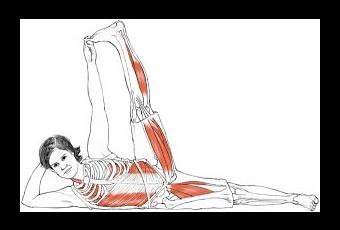 Distesi su un fianco con le gambe ben tese, una mano sarà posta dietro la nuca a sostenere il capo, mentre l’altra si distenderà per raggiungere il piede della gamba posta superiormente.