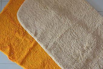 poi ci si mettono dentro i tappettini e altri pezzetti di stoffa, facendo cura di schiacciarli bene dietro la parte centrale all'interno del pouf che lo fa ritenere la forma piatta sotto e sopra (abbiamo ancora un altro pouf non scoppiato, ma si è rotta questa parte all'interno ed è diventato una specie di palla).