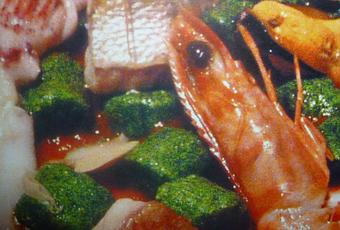 aprite il guscio delle capesante senza rovinare la noce pulite i calamaretti eliminando la pelle squamate e sfilettate la mazzola e le triglie e tagliate i filetti ottenuti a cubetti di circa 2 cm per lato sgusciate le mazzancolle conservando la testa