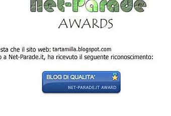 Questa mattina aprendo la mia posta, mi sono trovata con questa bella SORPRESONA, tempo fa mi ero iscritta a NETPARADE e oggi a distanza di qualche anno mi vedo consegnare questo BEL PREMIO!!! Ringrazio lo STAFF di NET-PARADE per aver decretato questo premio al mio blog che per me è il mio gioiellino. Ora devo darmi da fare per migliorare in alcuni aspetti che lo STAFF mi ha detto di modificare. Ma già tutto ciò è GRATIFICANTE! Buon fine settimana di CUORE