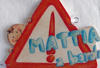 Così alla fine Mattia è arrivato, appena in tempo per preparargli un bella targhetta da mettere sul retro della macchina!