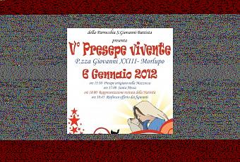 Il prossimo 6 gennaio 2013 andrà in scena la sesta edizione del Presepe Vivente di Morlupo, comune in provincia di Roma. Nei giorni scorsi è stato reso noto il programma della manifestazione organizzata dal comitato ” ‘u Presepiu all’archicinu“: si inizia il 5 gennaio alle ore 15.30 con il corteo dei figuranti che muoverà da Palazzetto Borghese fino a Piazza Giovanni XXIII. Alle 16.00 si potrò assistere al presepe artigiano per i vicoli della Mazzocca. Un momento di raccoglimento alle 17 con la celebrazione della Santa Messa dell’Epifania e poi dalle 18.00 andrà in scena la sacra rappresentazione del Presepe Vivente. Alle 18.45 rinfresco offerto dai figuranti.