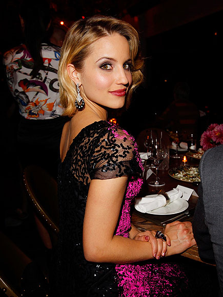 Elegantissima Dianna Agron, star di Glee in un abito paillettato nero e rosa carico, alla cena alla Soho House di West Hollywood organizzata da Vogue CFDA Fashion Found.