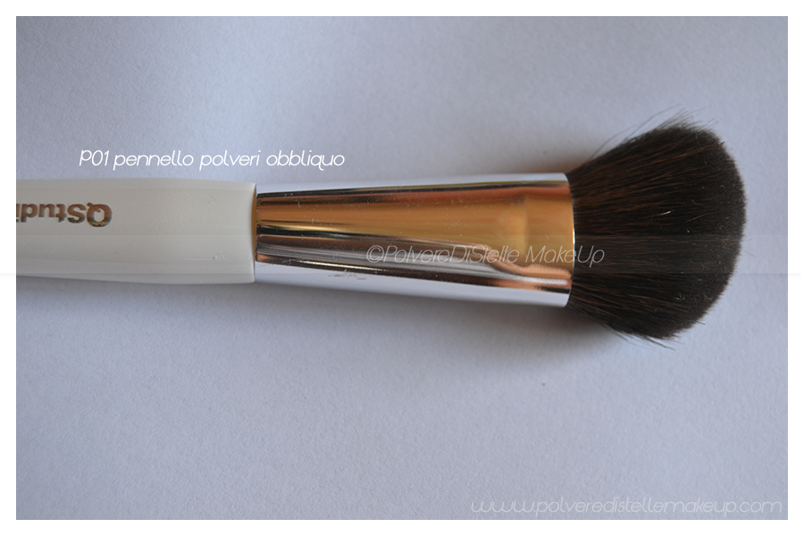 La sua fattura mi ha ricordato molto il 217 di M.A.C. con la sola differenza che quest'ultimo é un po' piu' "cicciotto",mentre il P11 é leggermente piu' piatto.Le setole sono morbide ma molto compatte,tant'e' che il primo utilizzo mi ha decisamente stupita per la facilita' con cui riesce a sfumare sia i prodotti in polvere che quelli cremosi.La consistenza delle setole consente oltretutto una certa precisione,cosa che normalmente non avviene con questo genere di pennello,non proprio di precisione! Che sia destinato a diventare uno dei miei preferiti?Anche in questo caso le setole sono naturali.Il prezzo é di 24,00 euro.