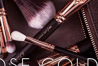 Una delle prime novità è il Rose Golden Luxury Set, una selezione di 8 pennelli fatti a mano, con ghiera in oro rosa e manico in legno, contenuti all'interno di una elegante pochette.