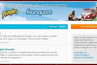 Per completezza, vi passo anche la versione ufficiale: L’idea è quella di rendere questa pagina un oggetto vivo e aperto, seguendola e suggerendo un posto da non perdere (una piazza, un locale, un evento) usando su Twitter l’hashtag #pringles4sq e @pringles_ita con l’intento di raccogliere e mettere a disposizione degli utenti i luoghi del divertimento delle principali città italiane.