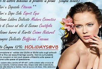 Fino al 30/06/2011 su una selezione di prodottivecchiabottega propone uno sconto del 12% (fino ad esaurimento scorte)* inserendo il codice HOLIDAYS@VBEcco i prodotti da portare con te in vacanza :-Solari e doposole Fitocose ( Latte solare alla carota MP-BP-AP; Latte solare alla crusca di Riso, Baby Carota, Crema solare viso oil free; Doposole alla calendula; doposole alla Menta, Gel al succo di Aloe, Olio abbronzante Mallo noce)-Solare e doposole Esprit Equo-Olio di cocco ed olio di Sesamo Centifolia-Balsamo Labbra Delicato Madara Cosmetics-Shampoo delicato Biofficina Toscana-Balsamo capelli al burro di karitè*la promozione sarà valida dal 25/06 al 30/06 solo sugli
