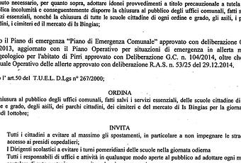 Vista l’ordinanza del sindaco n. 59 del 30.09.2015 (che si allega) riguardante “la chiusura al pubblico degli uffici comunali fatti salvi i servizi essenziali delle scuole cittadine di ogni ordine e grado, degli asili, dei parchi cittadini, dei cimiteri e del mercato di Is Bingias per la giornata di giovedi 1 ottobre”, sentito il responsabile della sicurezza Sig. Nicola Ragazzo in contatto continuo con la Protezione Civile, sentito il Presidente, si comunica che per cause di forza maggiore indipendenti dalla volontà della Fondazione Teatro Lirico di Cagliari, la prova generale di oggi 30 settembre 2015 prevista alle ore 19.00 viene annullata. Viene annullato, altresì, l’assieme per la recita delle scuole prevista per domani dalle ore 11.00 alle ore 13.00.