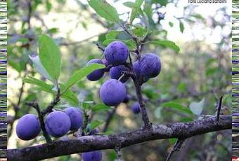 - Alberello o arbusto a carattere cespuglioso (3m.), i fiori compaiono in Primavera prima delle foglie. Il frutto è una drupa inizialmente verde poi, a maturazione, blu scura, contenente un nocciolo duro e ricoperta da una pruina cerosa; la polpa è molto aspra ma comunque commestibile.