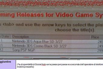 Il suo prezzo? Come testimonia sempre la schermata, sarà di 299€, contro i 249€ necessari per acquistare il nuovo Nintendo 3DS, che però arriverà sul mercato il 27 Marzo.
