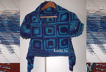 Altro coprispalle a crochet con tutte le sfumature del mare...la fascia inferiore si puo' allacciare sulla schiena