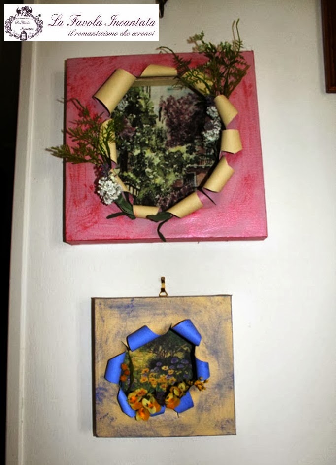 L' idea di ricreare a mio piacimento mobili, cornici, barattoli, lampade e tanto tanto altro mi ha sempre esaltato ed ecco perché quando mi sono presentata ho detto di essere un'appassionata di decoupage... quindi eccomi qua a farvi vedere un pò quello che ho realizzato nel corsi di questi anni..Oggi vi mostro dei particolari quadretti realizzati con tela.