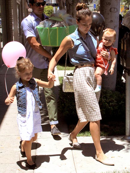 Jessica Alba opta per un colore chiaro abbinato ad una camicia jeans per lei e un gilet per la piccola Honor che sembra veramente la sua versione in miniatura!