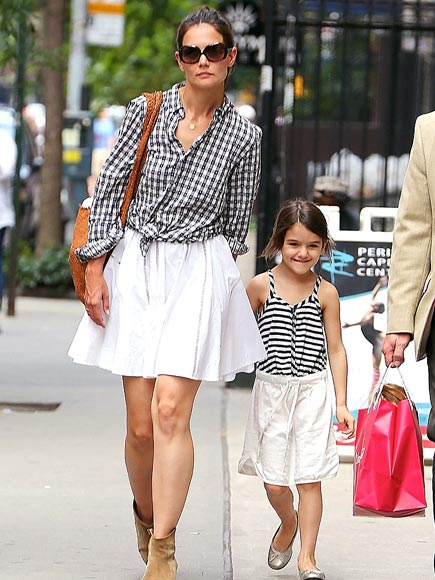 Le regine del matchy matchy sono però loro, Katie Holmes e la piccola Suri Cruise, da super fashion duo scelgono gonna bianca e maglia a quadri e righe nere! (da notare la faccia scocciata di Katie e la scucchia colossale di Suri!)