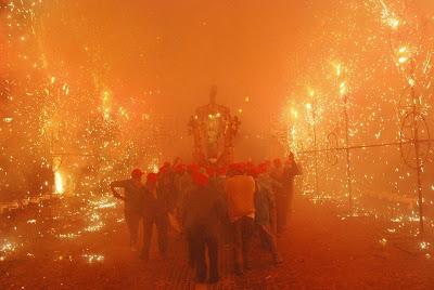 *Nella foto, tratta dal profilo Facebook di Antonio Saccà, la spettacolare “entrata” di Sant’Eufemia sotto un tunnel di fuochi pirotecnici