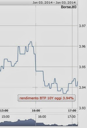Oggi, mentre sto scrivendo, il rendimento del BTP decennale è al 3.94%, cioè oltre 200 punti meno rispetto ad allora (15 luglio 2012).(Fig. 2)