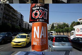Due poster, uno a favore del "Sì" ("Nai") e uno a favore del "No" ("Oxi") (AP Photo/Thanassis Stavrakis) Venerdì si sono tenute ad Atene e in altre città greche grandi manifestazioni sia per il Sì che per il No al referendum sull’accordo coi creditori internazionali che si terrà domani in Grecia. La più grande manifestazione per il “No” si è tenuta a piazza Syntagma di Atene, mentre la principale manifestazione per il “Sì” sì è tenuta nello stadio Panathinaiko, lo storico stadio della capitale che ospitò i primi Giochi Olimpici moderni, nel 1896. I cittadini greci dovranno scegliere se accettare o non accettare l’ultima proposta fatta dall’Unione Europea. Il referendum è stato indetto domenica scorsa dal primo ministro greco Alexis Tsipras e il suo esito potrebbe determinare il futuro politico del governo e influenzare in modo rilevante il futuro economico della Grecia e dell’intera Unione Europea. Tsipras ha rifiutato le condizioni proposte dall’Unione Europea e si è quindi schierato per il “No” (“Oki”, in greco); ci sono molti greci che sono invece per il “Sì” (“Nai”, in greco). L’esito del referendum è incerto.