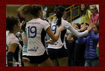 I festeggiamenti delle ragazze dell’Epikure Luino Volley dopo la vittoria della scorsa settimana (Foto © Roberto Ballardin)