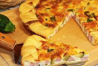 La quiche di zucchine, formaggio e prosciutto è una torta salata gustosissima, molto semplice da preparare, veloce ed apprezzata da tutti! La fragranza dell'involucro di pasta frolla o brisè viene spezzato dalla cremosità del ripieno al formaggio, che acquista un gusto delicato e molto saporito con le zucchine saltate in padella ed il prosciutto cotto.