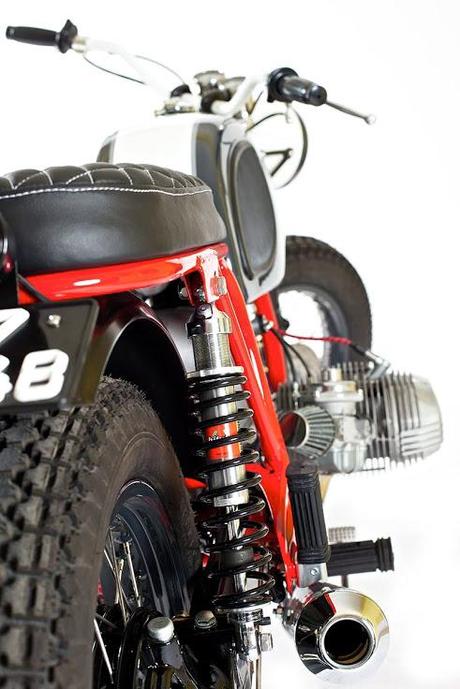 A quanto pare, questa realizzazione di Maria Motorcycles è nata perché il proprietario di questa BMW R75/6 cercava una nuova sella. Aveva già il motore qualche altra parte già ricostruita, ma quando ha incontrato i ragazzi di Maria, ha deciso di trasformare completamente la sua moto con un progetto più ambizioso: il Panzer!