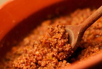 - In una casseruola con tre cucchiai di olio e il burro, far appassire il trito di odori.Unire la carne tritata e fare rosolare.